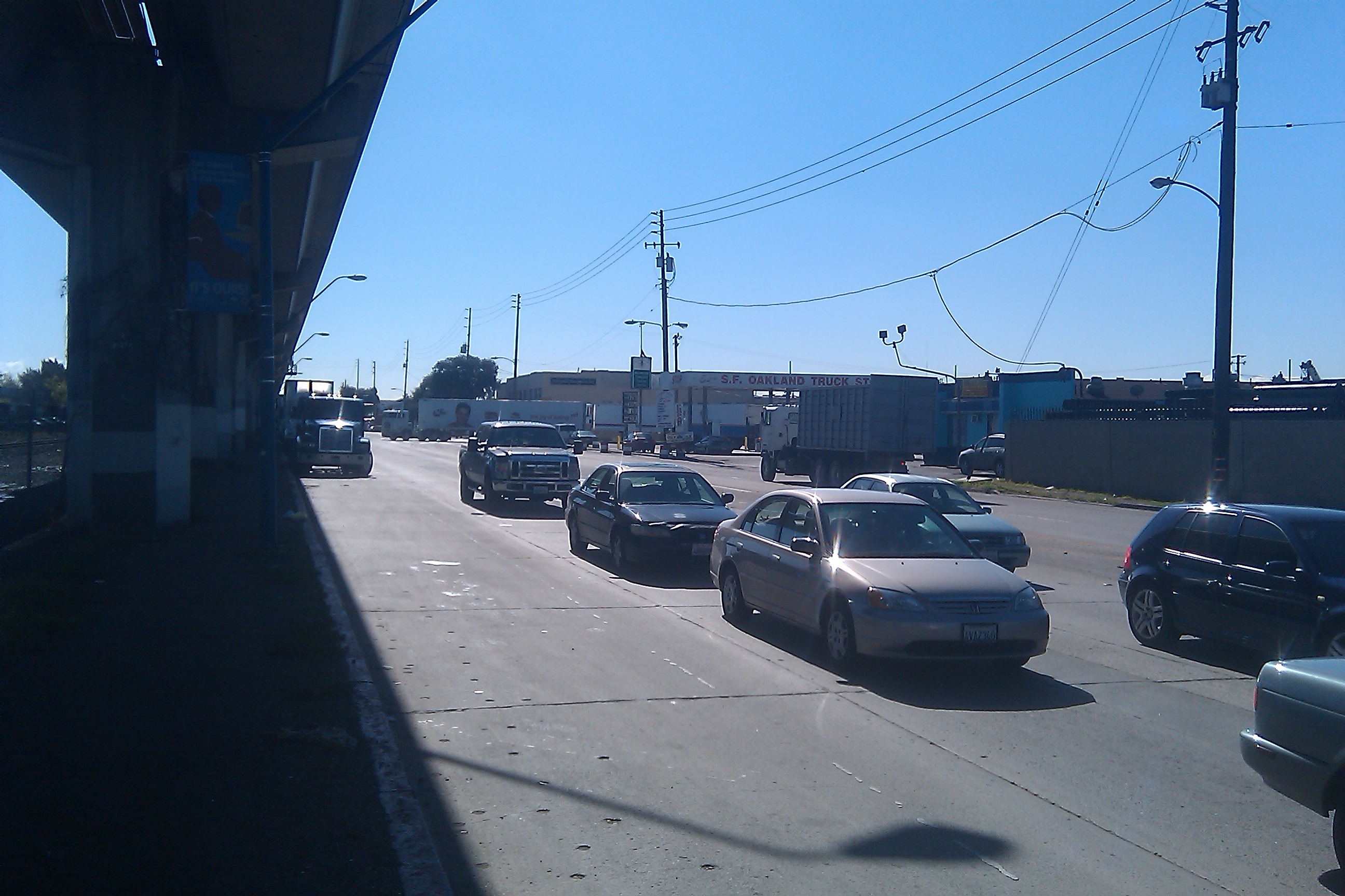 OK, we have been running hard for the last week so let me try to catch everyone up.  After our delivery in Hayward there was nowhere to park.  We were sitting at the curb near the consignee’s waiting for a load assignment.  I was on the phone with my friend Shannon and she looked online and found a truck stop in Oakland, so we fired up the truck and headed over there (about 10 miles)  I will go ahead and call it a truck stop because the name included the words “Truck Stop”.  It was a joke and their parking was on the road.