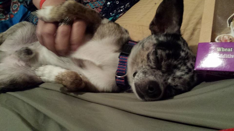 ED is the newest Leonard family member. Ed is a merle chihuahua that needed a home. I have been talking about getting another dog for a few weeks and a couple appeared. Funny how that happens. It took me a long time to get over Max but realized Lil Bit needed a friend. Now Craig didn’t agree with me. My girlfriend from college posted a picture on facebook and tagged me in it. We happened to be in Alabama heading home for the weekend. I made plans to come down and pick him up for the weekend to see how he fit in. Ed is a doll. He has some issues but is the most loving puppy. He is a little over a year and has had some hard times in his past. We don’t know all the details and honestly I don’t want to know. But with love and patience he is doing amazing. He adores Craig. What is even weirder is he reminds us of Max. There are times I swear he is channeling Max. Little things that Max did in the truck, Ed does. He and Lil Bit wrestle in the morning. Her nose was a little out of joint but now she is doing great with him. I do think she was lonely. They make me laugh everyday and I am so happy that we have these two babies with us on our travels. Craig is head over heels over Ed. I did a good thing!!