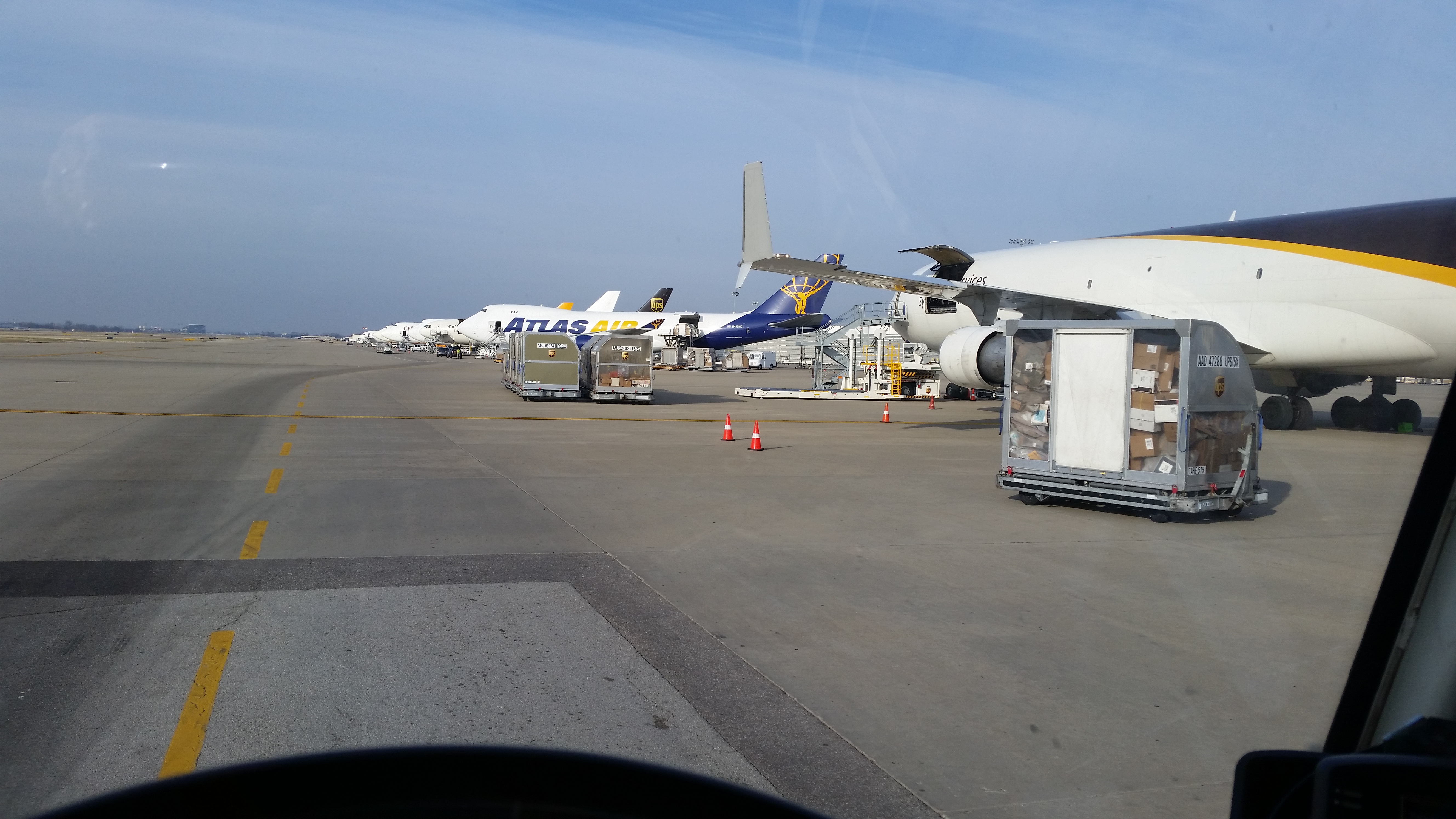 Whew…. We have been out of the loop for a long time.  For the last couple of months we agreed to a contract to provide outside services to UPS.  Last year UPS got slammed mostly due to all of the huge winter storms and suffered a huge hit when they did not get all of your Christmas packages to you on time.  They were determined it was not going to happen again so for the first time ever, they brought in outside drivers to help out at the UPS Worldport in Louisville Kentucky.  This place is amazing.  Over 160 UPS planes land, get unloaded, get reloaded and take off every day.  Anne and I drove what we have always referred to as “Yard Dogs”, UPS calls them “Yard Birds” and “Shifters”.  They are short, 2 axle vehicles that are used to move trailers around at manufacturers and shipping facilities.  They are very maneuverable and they have a hydraulic fifth wheel arm to raise the trailers so you do not have to raise or lower the landing gear.  The big news is……ANNE LEARNED HOW TO BACK A TRAILER!!!!!  After 7 weeks of backing trailers into very tight spots she is a pro.   Our job was to take the inbound trailers from over the road drivers and drive them to the other end of the airport where they would be put on a door at “The Core” where everything is sorted and some put on airplanes and some put back on trailers which we would then haul back to the other side of the airport for outbound trucks.  We lived in an extended stay hotel so we had a full kitchen and a separate bedroom.  We worked Monday thru Friday 10 hours a day.  It was so weird having weekends off.  We took advantage of it though by doing some sightseeing.  Favorite thing was probably the Jim Beam Distillery Tour.  It was very hands on and a lot of fun.  We even bottled our own Single Barrel Knob Creek Bourbon which they engraved for free when we bought the bottle.