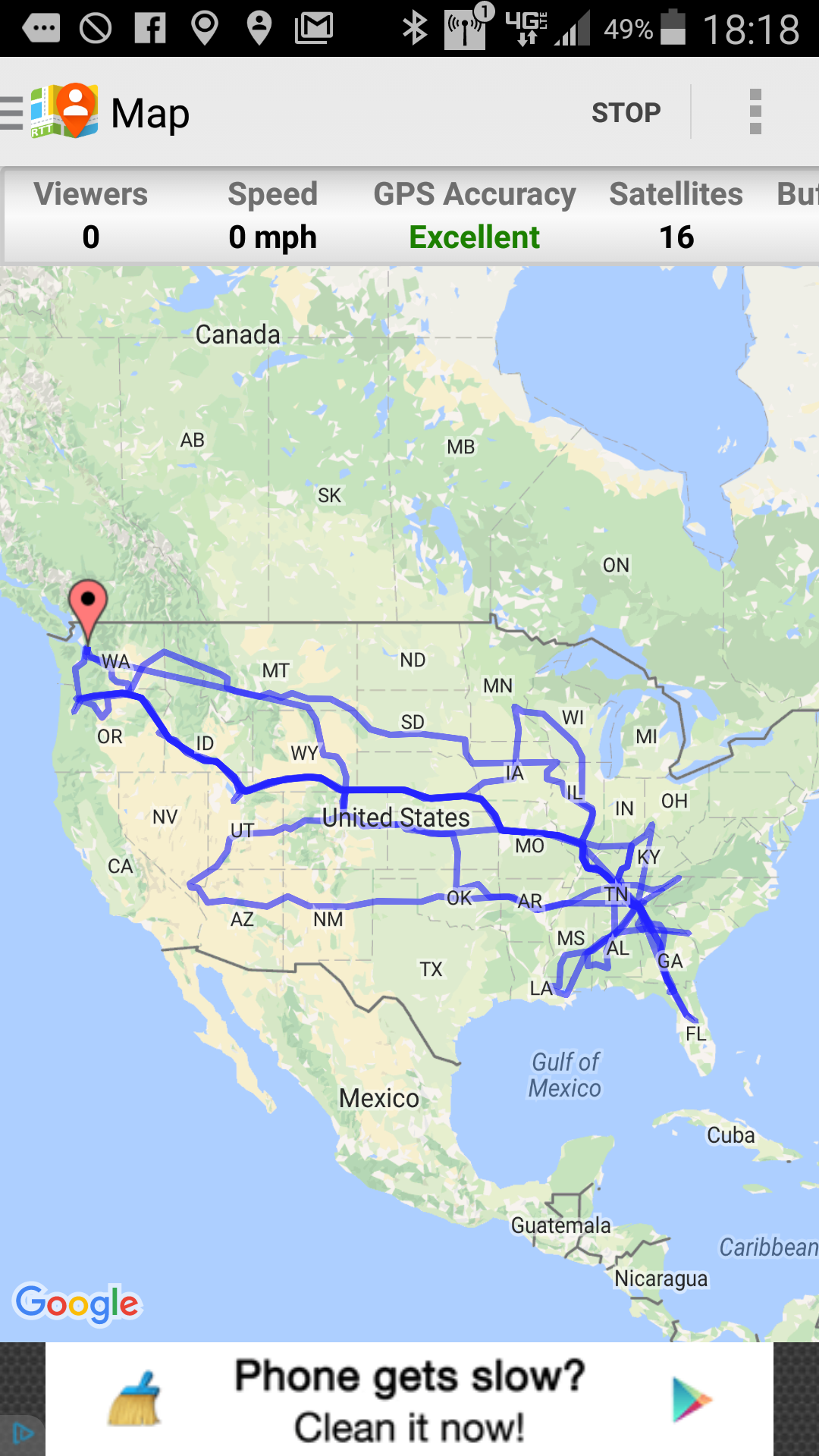 Here is a map of our travels from October 1st through December 31st. It includes our trip to the Caribbean.