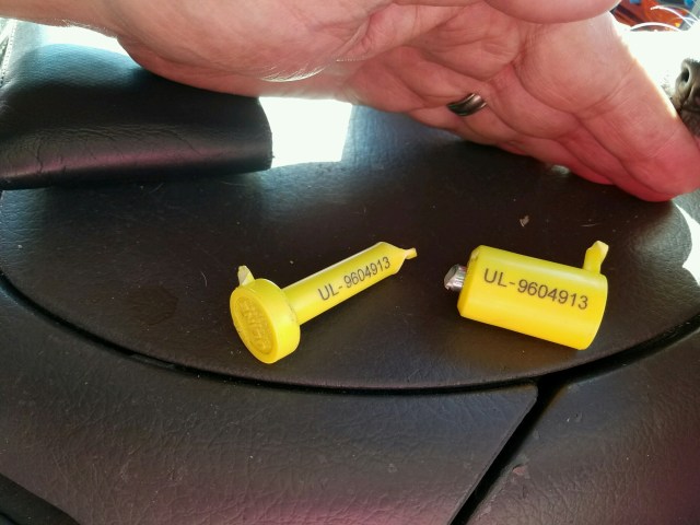 The only time we had stopped on this run other than for fuel was parking on the road at the receiver.  While we waited for the police Anne and the head of security walked back out to the road and found the seal on the ground where the trailer had been when we first parked.  So we know the break in happened between 1 AM and 2:30 AM.