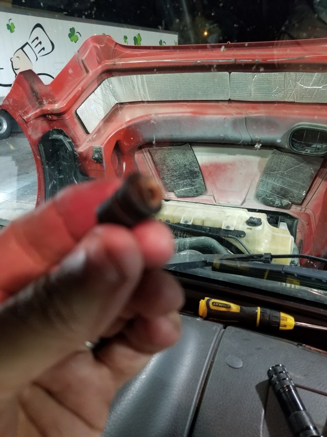 A $25 part that we could only get at Volvo. We finally broke down in New Mexico and got towed to El Paso. It took me less than 45 seconds to replace it.